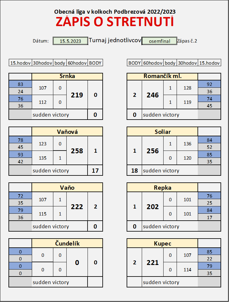 osemfinále turnaja jednotlivcov 2 deň 16.05.2023 17:36 ďalší postupujúci : Romančík ml., Soliar, Vaňo, Kupec