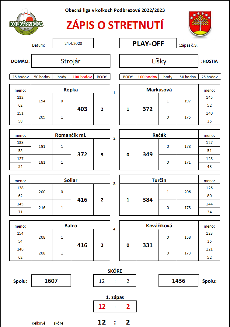 PLAY OFF č. 9 1.semifinálový zápas Strojár - Líšky