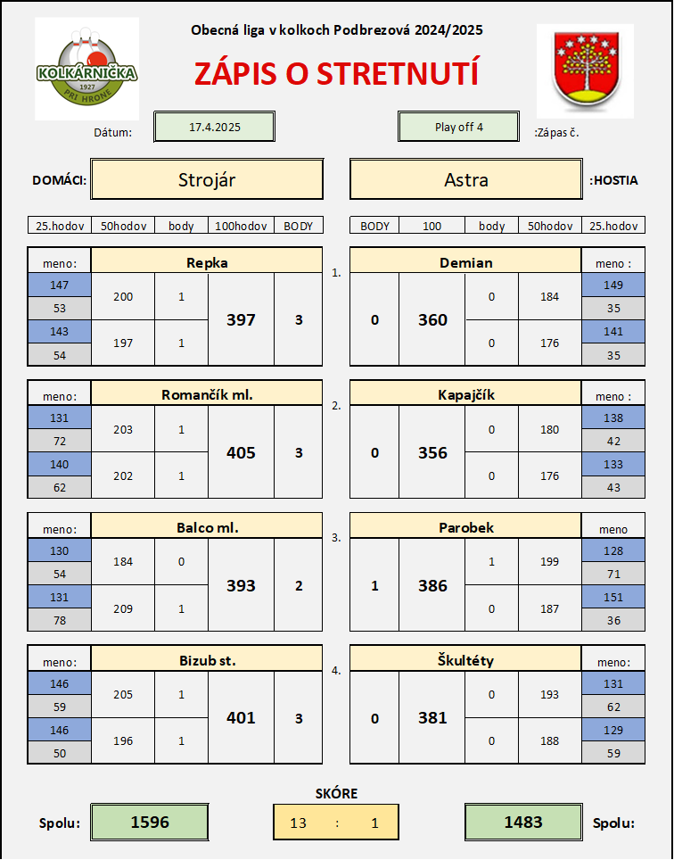 play off zápas č.4 Strojár - Astra