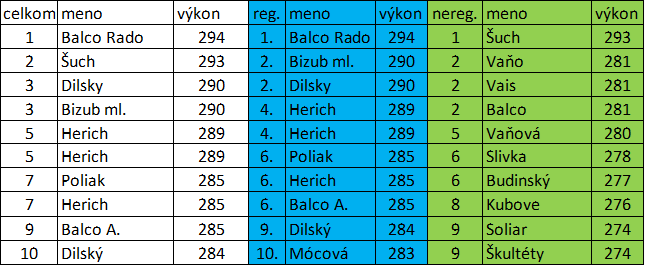 Top 10 výkonov - hráči (celkom/registrovaní/neregistrovaní)