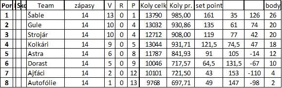 Tabuľka súťaže po jesennej časti