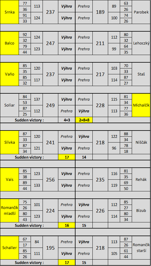 výsledky ZÁPASOV 8-FINÁLE TURNAJA JEDNOTLIVCOV