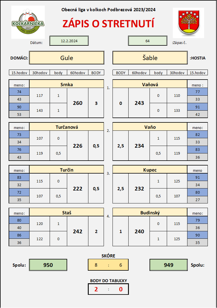 Zápas 64 Gule Šable