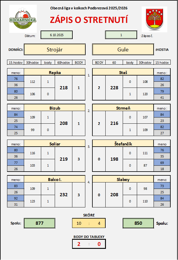 Zápas č.1 Strojár Gule