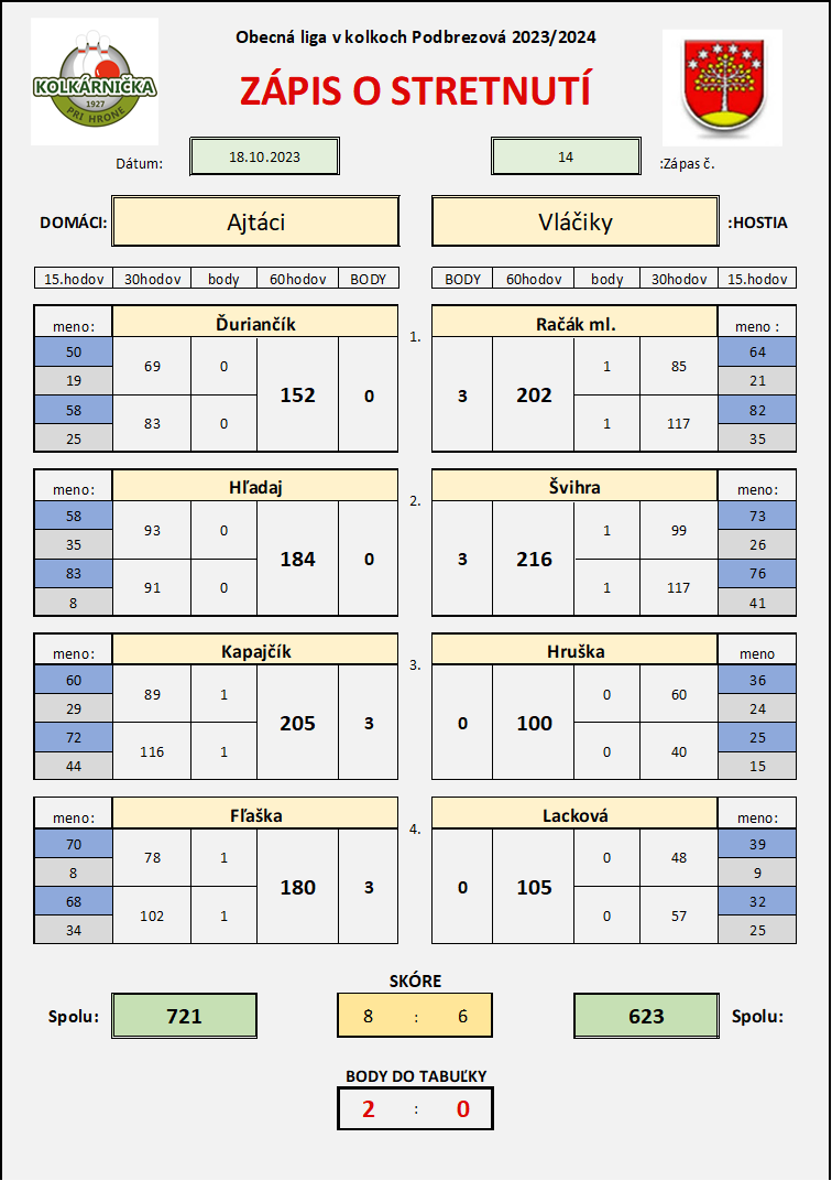 Zápas č.14 Ajťáci - Vláčiky