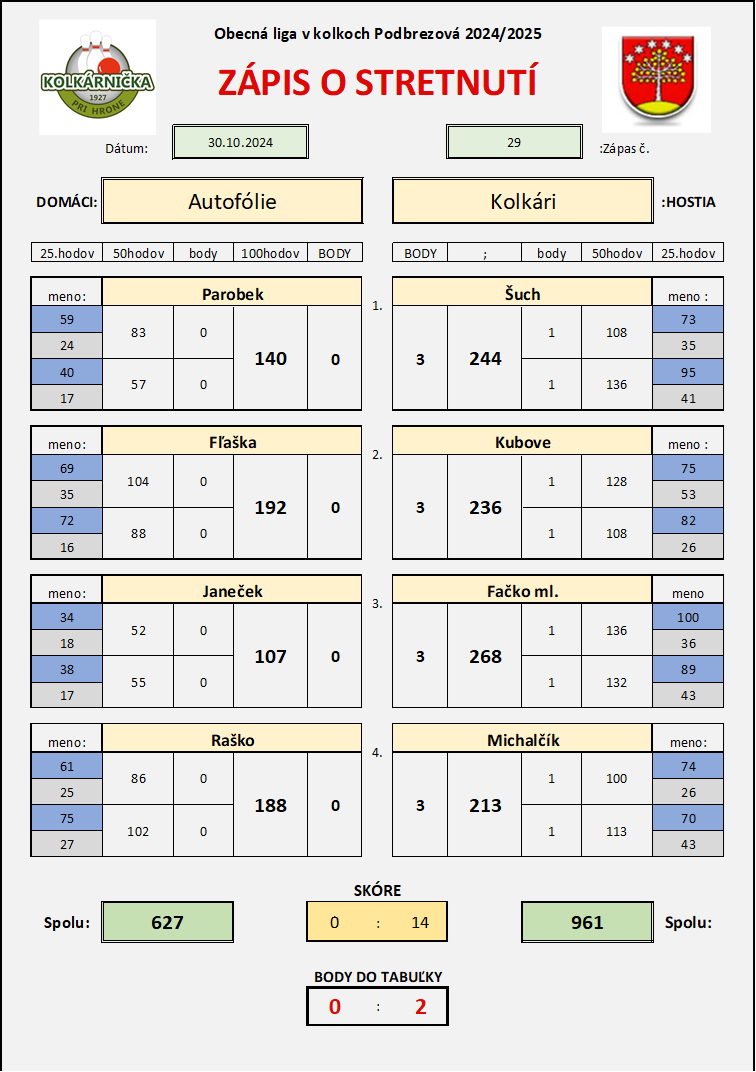 Zápas č.29 Autofólie - Kolkári