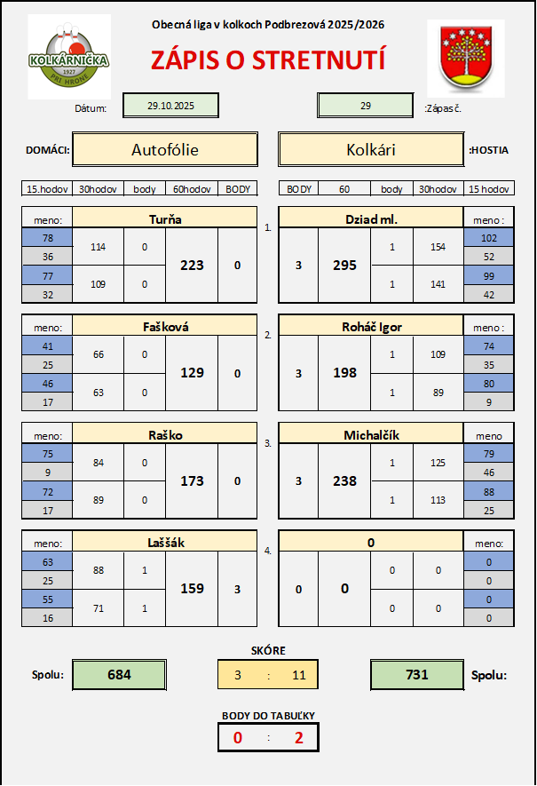 Zápas č.29 Autofólie - Kolkári