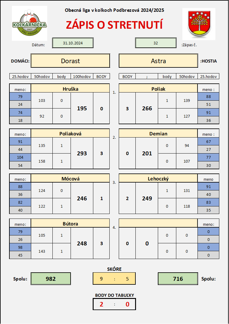 Zápas č.32 Dorast - Astra