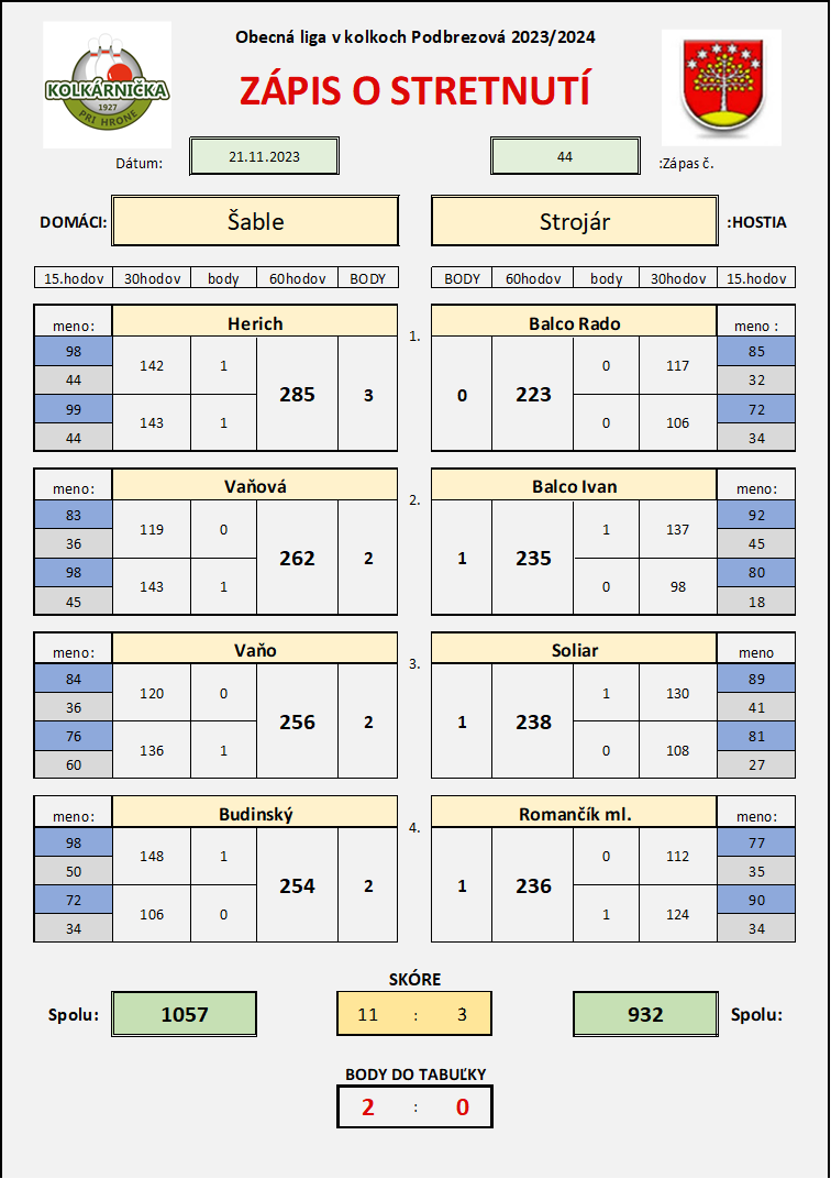 Zápas č.44 Šable - Strojár