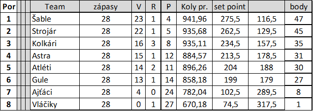 Konečné poradie po play off