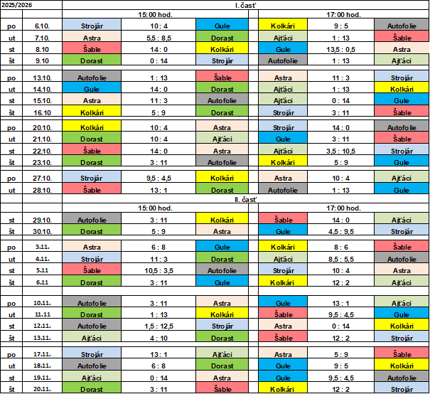 Výsledky zápasov jesennej časti
